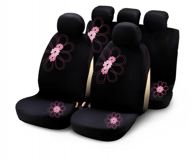 Bottari Üléshuzat, univerzális fekete-rózsaszín, virágos, hímzett, Bottari My Spring Flower